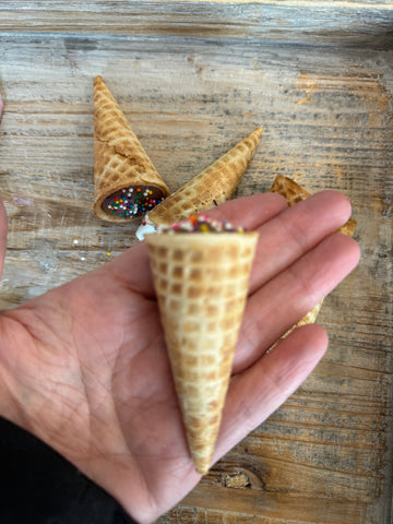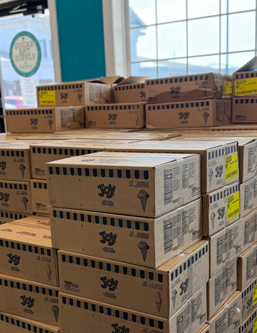 Joy #450S sampling size sugar ice cream cones! Family owned and operated since 1918, Joy is an old-fashioned favorite that continues today as the leading ice cream cone company. From mixing the batter to the baking process, quality and great taste is ensured with each and every Joy cone.